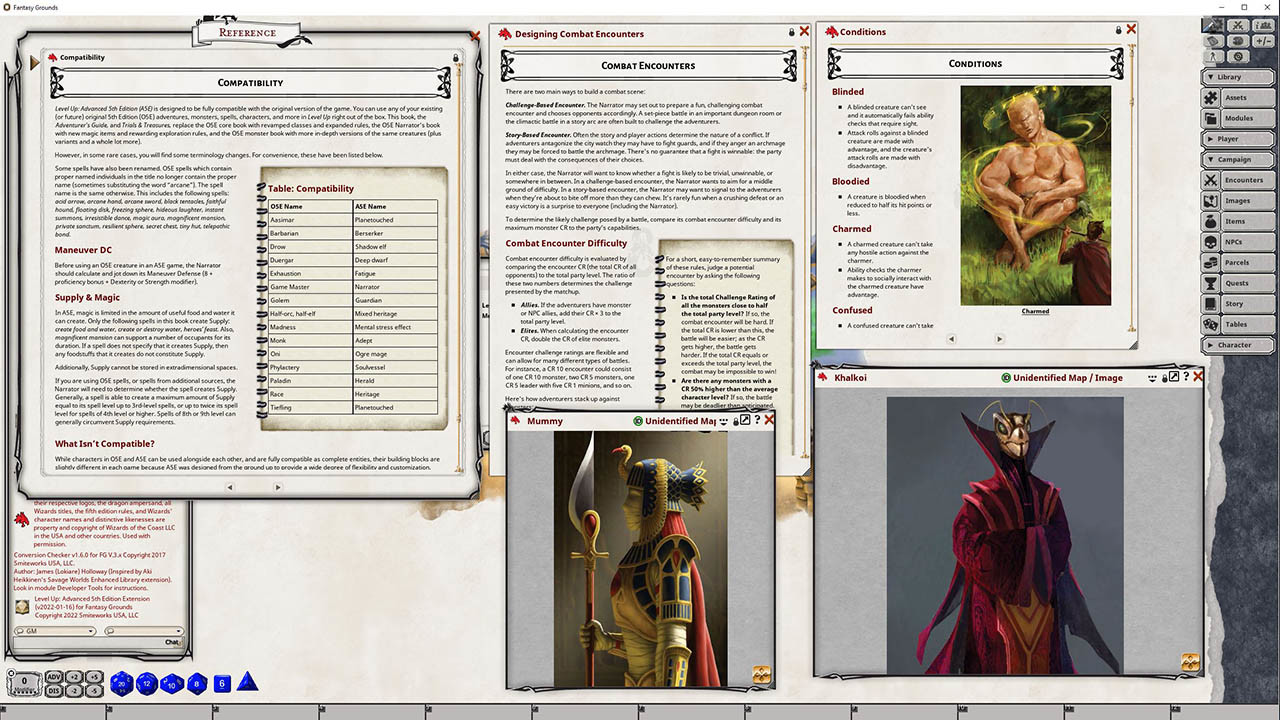 Requires: The free Fantasy Grounds virtual tabletop (VTT) software and the included 5E Compatible ruleset.
