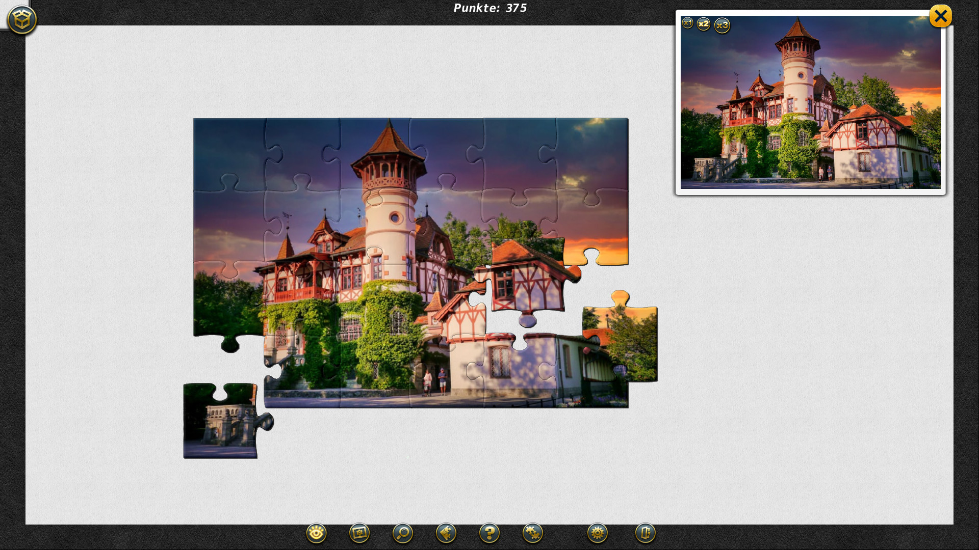 1001 Puzzle Palaces and Castles 2 ist die Fortsetzung des faszinierenden Spiels in der Atmosphäre der Burgen und Schlösser des mittelalterlichen Europas. Ritterliche Turniere, antike Architektur und luxuriöse Königspaläste! Vervollständigen Sie das Rätsel und genießen Sie den Blick auf herrliche Parks und Gärten, Marktplätze und Handwerksbetriebe.