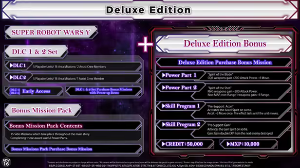 Upgrade your units and train your pilots with credits and resources you earn after every mission. Super Robot Wars Y introduces the new Assist Link system, which brings your favorite sidekick characters into action, allowing them to participate in missions and enhance their abilities and effects. Strengthen your heroes to overcome the next challenge!