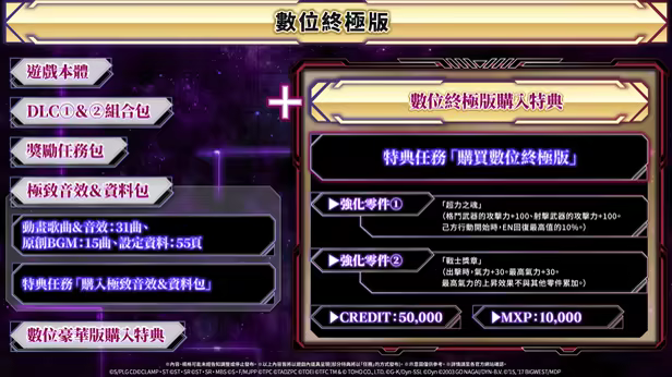 ※「DLC①」、「DLC②」的搶先使用權,是可在DLC單獨販售前兩天獲得DLC的權利。