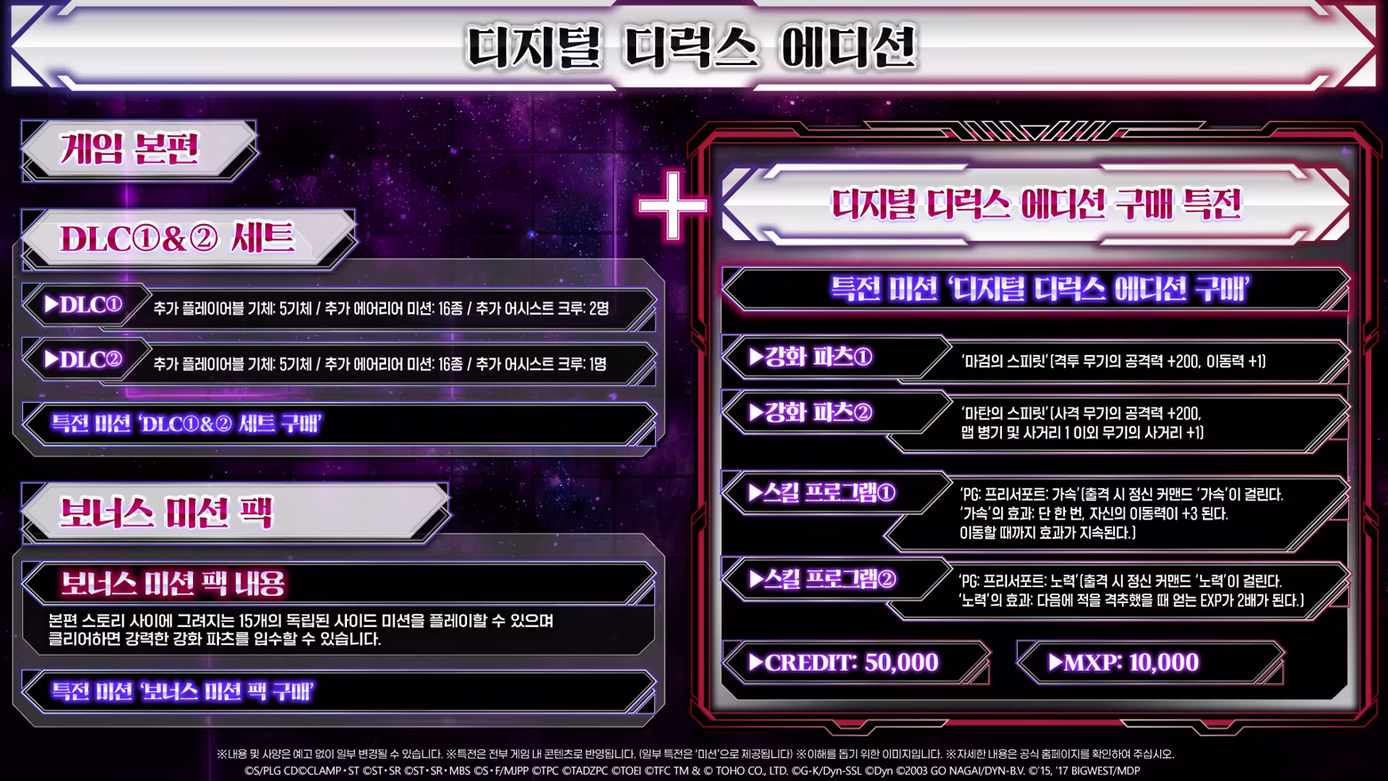 ※특전은 전부 게임 내 콘텐츠로 반영됩니다.