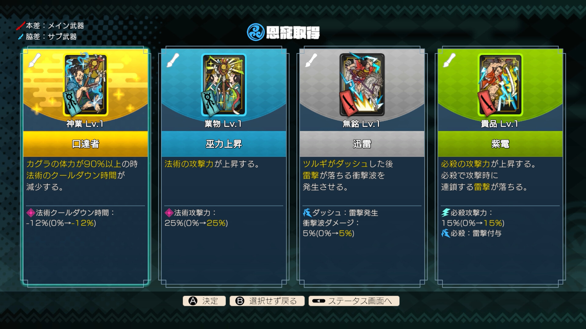 ダンジョンで手に入れた素材をシンジュの里に持ち帰ろう。素材は様々な基礎能力向上に使用することができる。また、ダンジョンで使用する刀を自作できる「刀鍛冶」でより強い刀づくりに挑戦しよう。