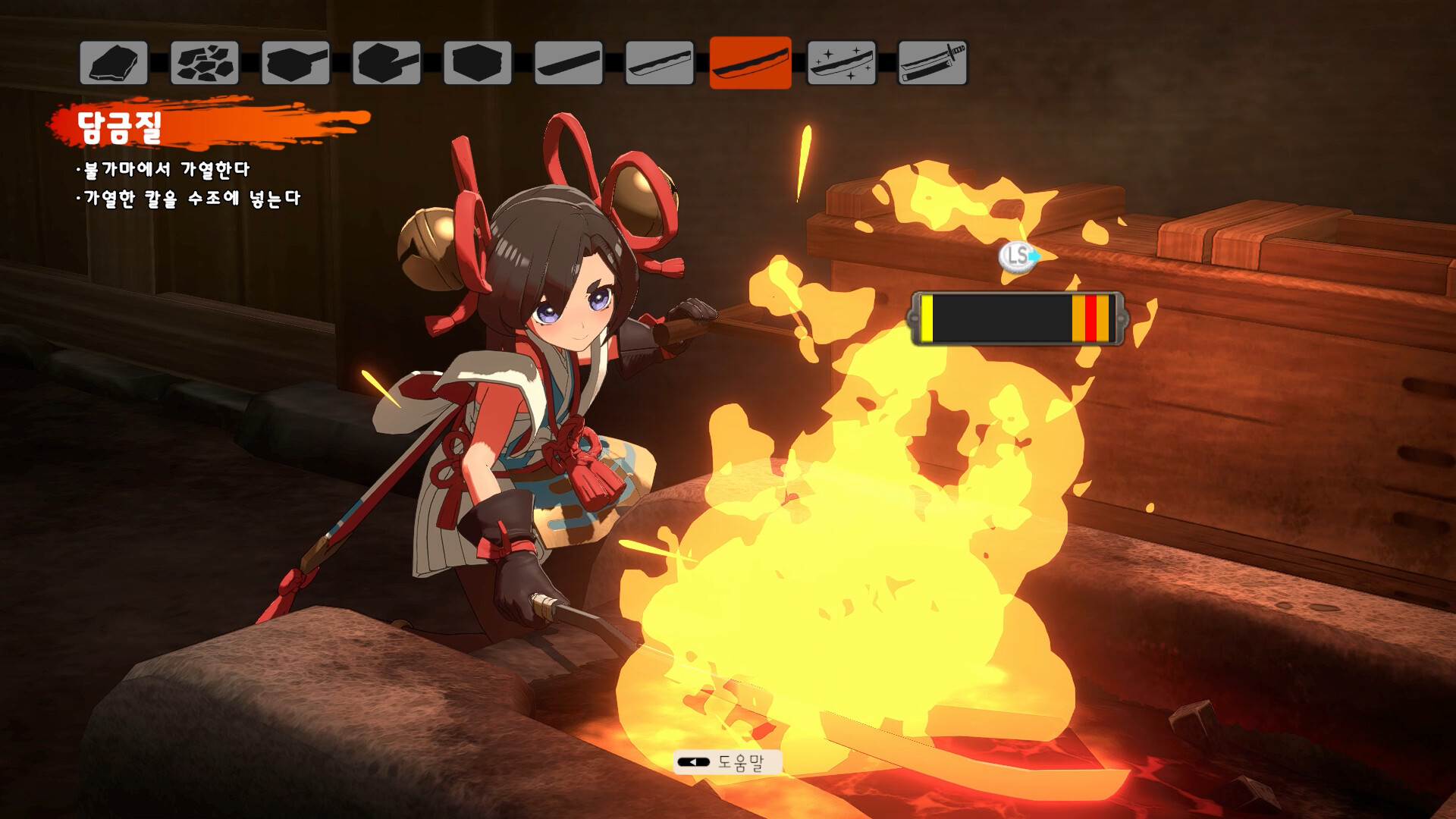 던전에서 입수한 소재를 신주 마을에 가지고 오자. 소재는 다양한 기초 능력 향상에 사용할 수 있다. 또한 던전에서 사용할 칼을 만드는 「대장간」에서 더욱 강한 칼을 만들어 도전하자.