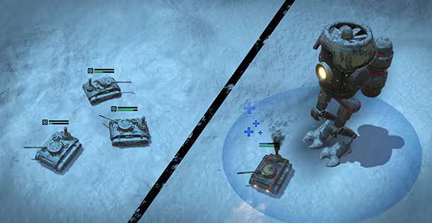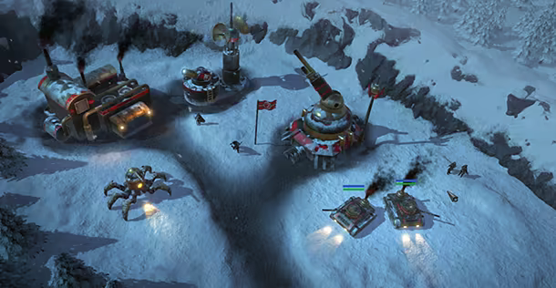 But what is a threat, could also be an opportunity. Your units are not the only ones that can freeze. Frozen tanks are a very good source of other resources. Send your harvesters where they should be, pull frozen, or damaged wrecks to your base to get resources and the victory will be yours.