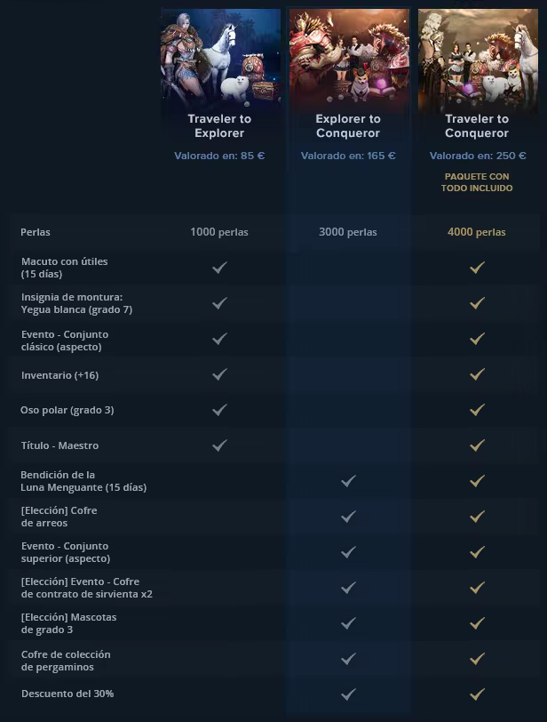 Incluye 3 artículo(s): Black Desert, [NA/EU] Traveler to Explorer DLC, [NA/EU] Explorer to Conqueror DLC