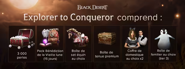 Comprend 3 article(s) : Black Desert, [NA/EU] Traveler to Explorer DLC, [NA/EU] Explorer to Conqueror DLC