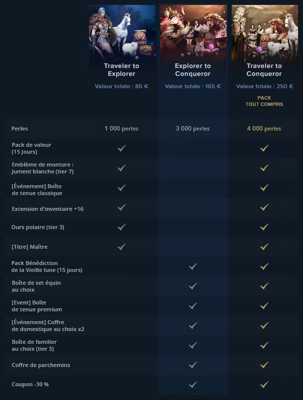 - Vous ne pouvez acheter chaque pack qu'une seule fois par compte.