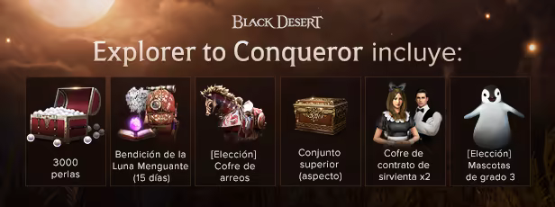 Incluye 3 artículo(s): Black Desert, [NA/EU] Traveler to Explorer DLC, [NA/EU] Explorer to Conqueror DLC
