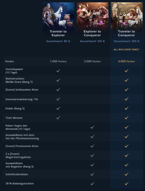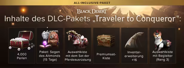 Das DLC-Paket „Traveler to Conqueror“ enthält die folgenden Gegenstände: