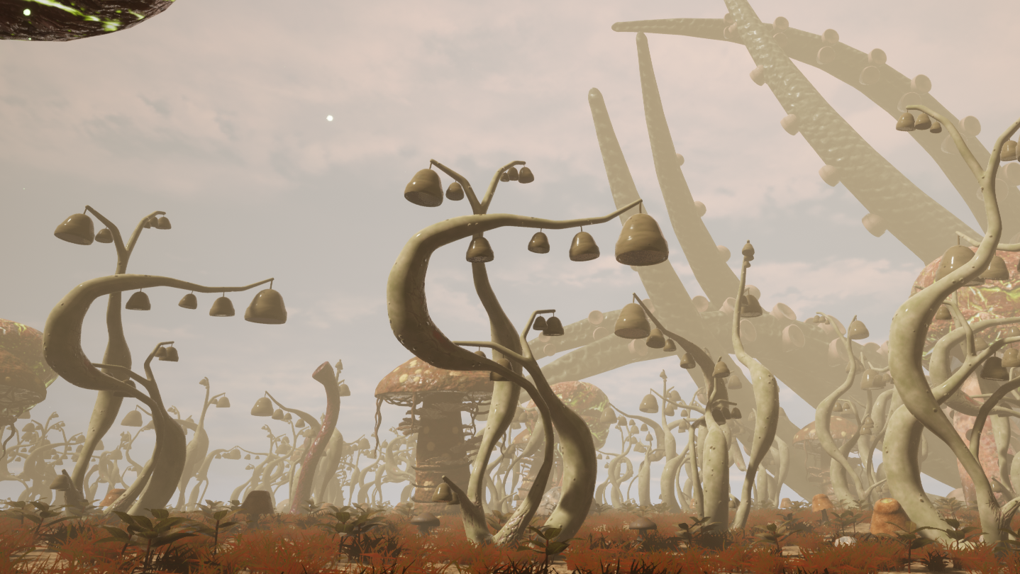 Nearly all objects in the world have been custom modeled and textured. Rather than an asset flip, R'lyeh's world items are suited to the alien environment of the world.