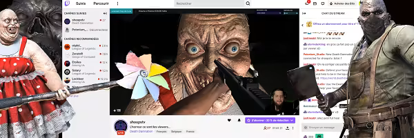 The game includes specific assets for streamers. The innovative game Death Damnation incorporates a community aspect with interactions / commands on the Twitch platform. An entire community can watches their favorite streamer and participates in their experience. The most diabolical ? The viewers can choose to help the streamer by offering them weapons, items, or health boosts, or they can choose to spread terror and send monsters to end the player's life.