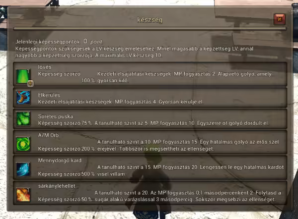 Képességpontokat kapsz, ahogy a karaktered szintje emelkedik.
