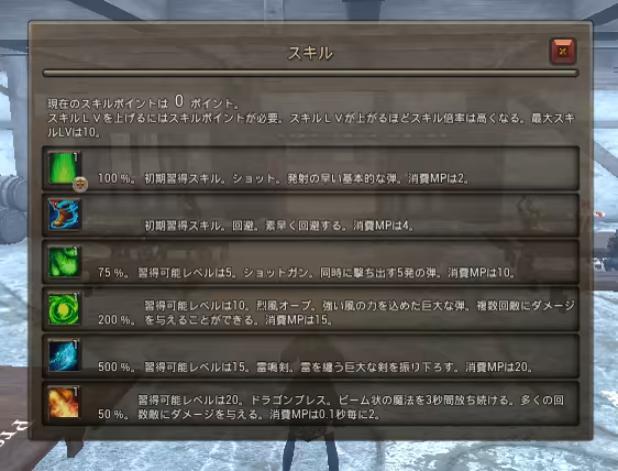スキルポイントを使うことで、スキルウィンドウからスキルのレベルを上げることができます。