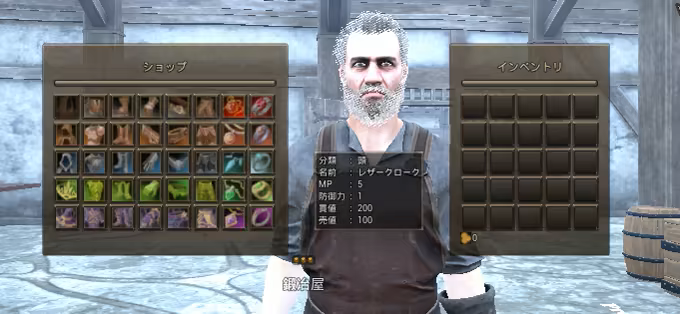 鍛冶屋では、クエストで手に入れたお金を使い、装備を購入することができます。