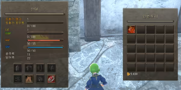 인벤토리 창에서 구매한 장비를 장착해주세요.