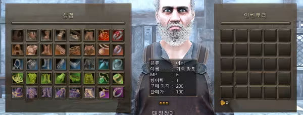 대장간에서는 퀘스트를 통해 얻은 돈으로 장비를 구매할 수 있습니다.