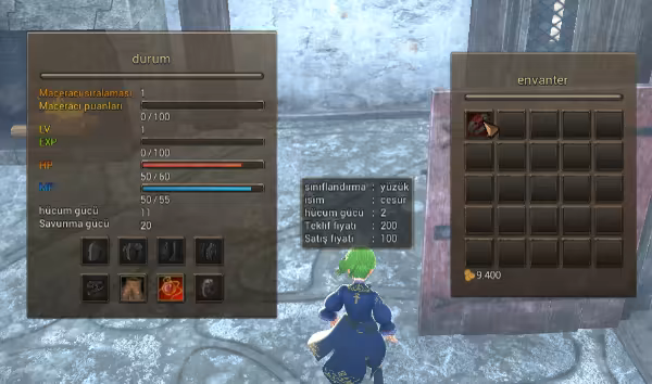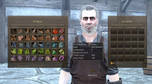 Lütfen satın alınan ekipmanı envanter penceresinden donatın.