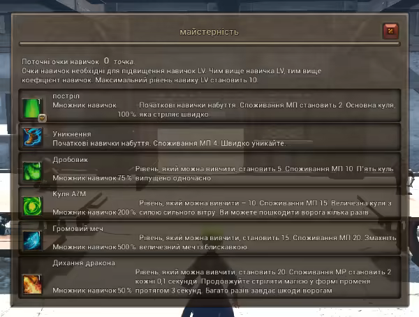 Використовуючи очки навичок, ви можете підвищити рівень навичок у вікні навичок.