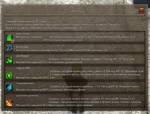 Используя очки навыков, вы можете повысить уровень навыка в окне навыков.
