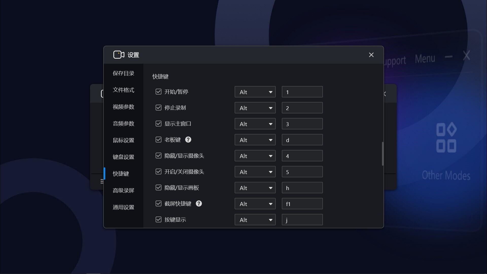 • 希望后台隐藏录制吗?启用 Boss 键即可隐藏于无形。