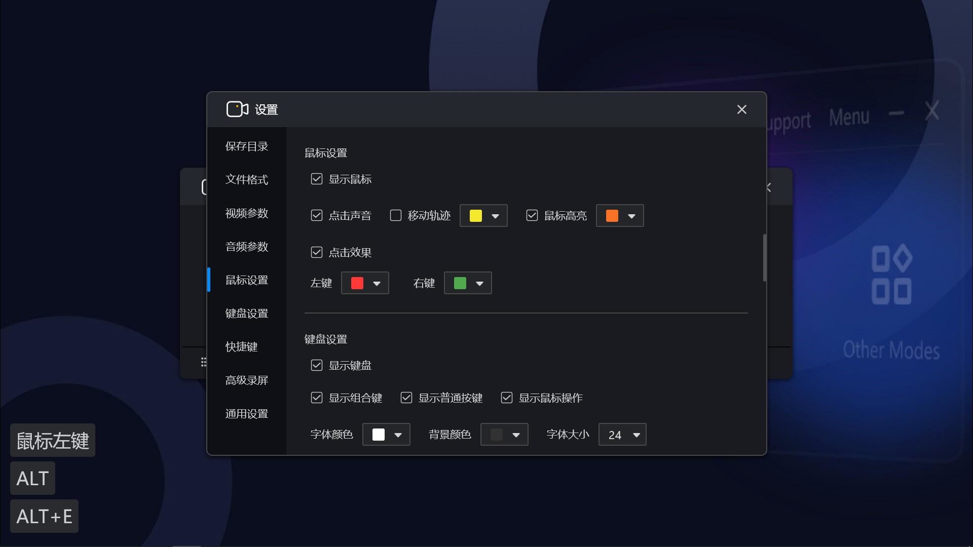 • 准确显示您想要的效果:鼠标特效、键盘操作显示、和荧光笔及画笔工具等