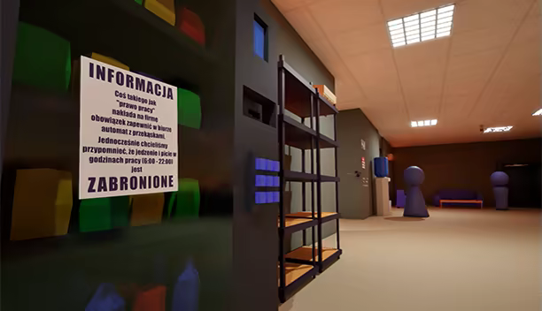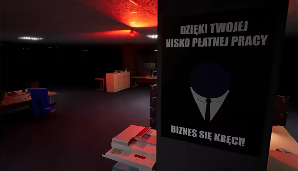 Pierwszoosobowa, gra dla pojedynczego gracza, w której mierzymy się z pozornie prostym zadaniem - wyjściem z siedziby firmy w trakcie nadgodzin (darmowych)