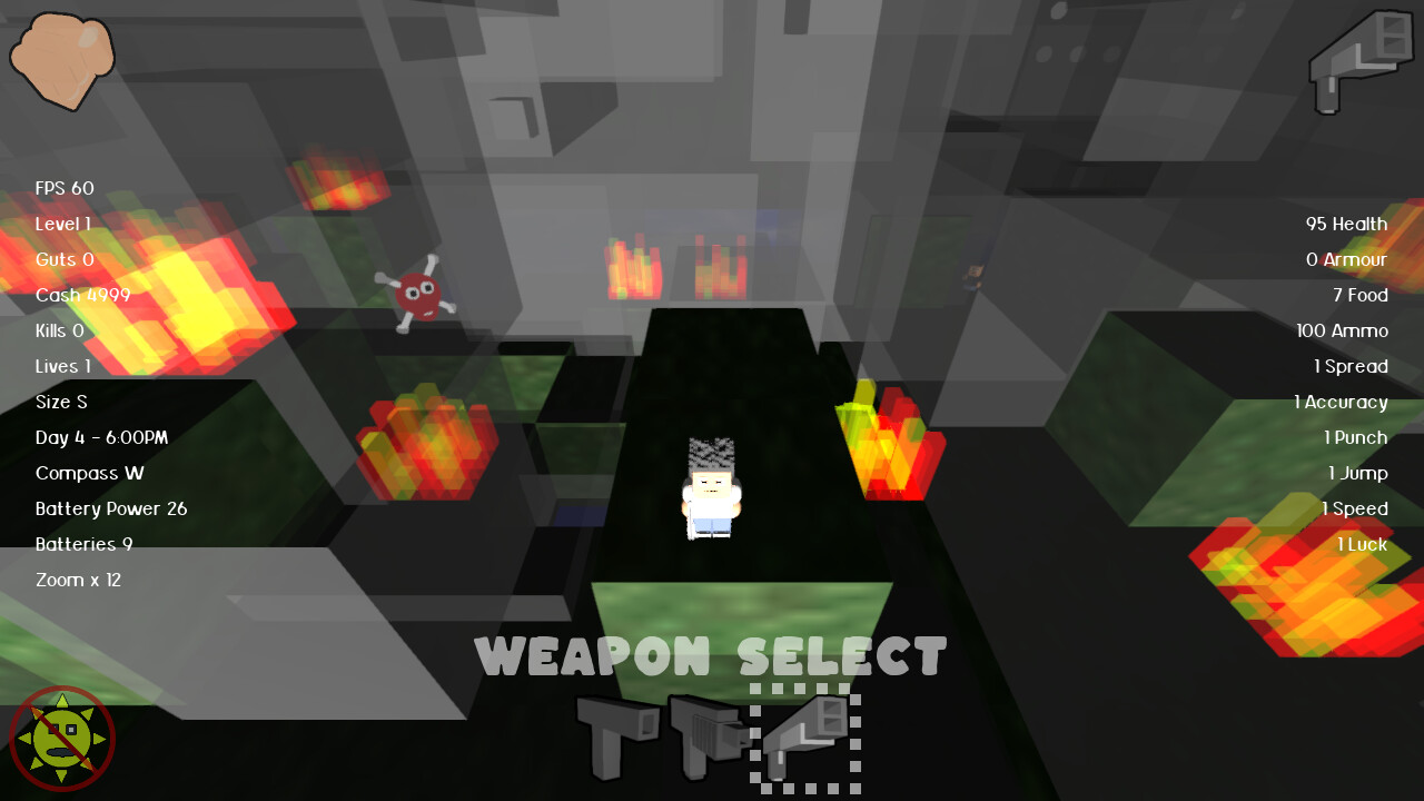 Voxel style, survival game with rouge like, platformer, and beatemup/brawler elements, randomly generated levels in real time. sent to another dimension, burner must collect $50,000 to make it back home, upgrade stats and buy weapons between levels. Gamepad Recommended. In development since 2021.