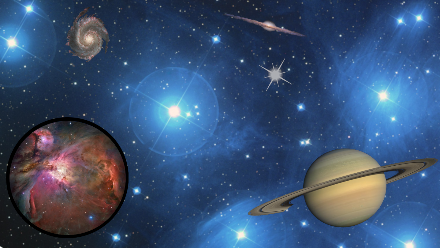 In addition, PlanetVRium displays over 150 nebulae and galaxies, which are shown as pink and green dots in the sky, alongside their neighboring stars. Use this as a reference to learn where to aim your own telescope, in real life, to see the same night sky objects. And, just like the stars, you can “shoot” one of these dots, which will display beautiful color photos of each galaxy or nebula, as seen by the Hubble space telescope and other astronomers.