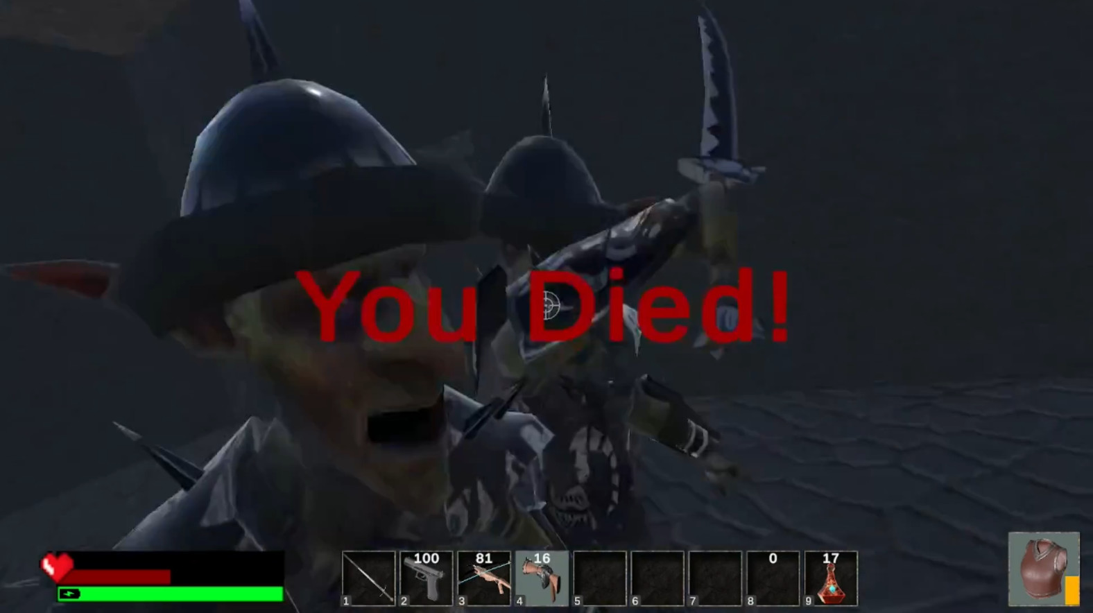 The goal is to see how many levels you can get through before dying, and not sweat your inevitable demise. While you can now officially beat the game, you can continue to further levels as NG+. You shoot and slash your way through the levels while looking for armor and weapons to increase your chance of survival, then enter the portal tele-fog to progress. Jump onto high areas for tactical advantage, while using whatever advantage you can find. Use the right weapons for the right enemies while trying not to waste ammo you might need later. With melee weapons you can also make stealth attack on unaware opponents, or jump to power attack, both of which are criticals (and stack). With guns (in their magical form) kill at range, and use deadly wands for more dangerous enemies ... and remember that some enemies have special abilities or resistance to some attack forms.