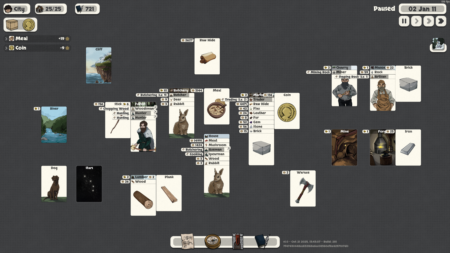 Paper Kingdom is a colony management game. Stack cards to gather resources, build structures, explore and fight invaders. Turn a nomadic tribe into an empire.