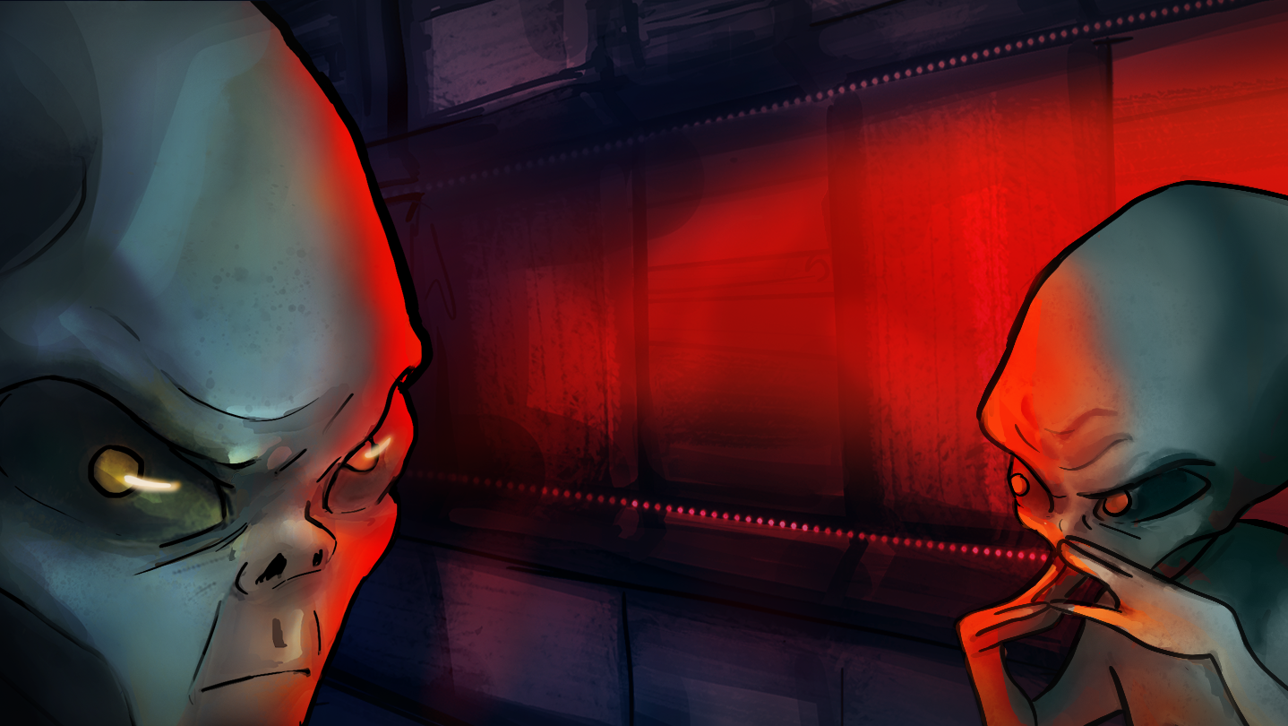 The aliens lived in relative peace in their part of space until humans invented faster-than-light travel. The humans occupied the mother planet and the surrounding ufok space stations.