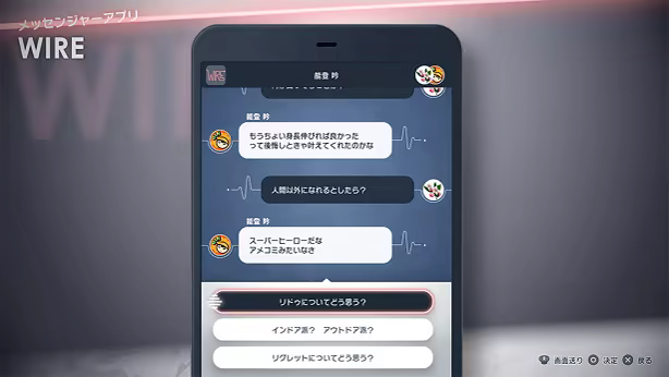 個別チャットでは仲間たちに質問をすることができ、​​回答に意外な一面を見せる場面も。​