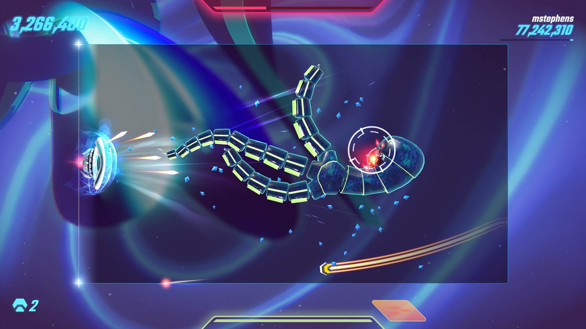 Travel through 10 distinct worlds and battle 9 unique bosses; packed with amazing physics effects, power-ups and special attacks. Take control of the playing field with the innovative “suck and blow” mechanic, altering the game to your benefit and charging up ultimate ability SHARDSTORM.