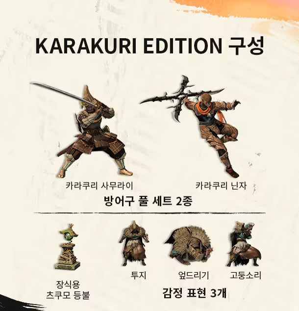 • 방어구 풀 세트 2종 (카라쿠리 사무라이 + 카라쿠리 닌자)