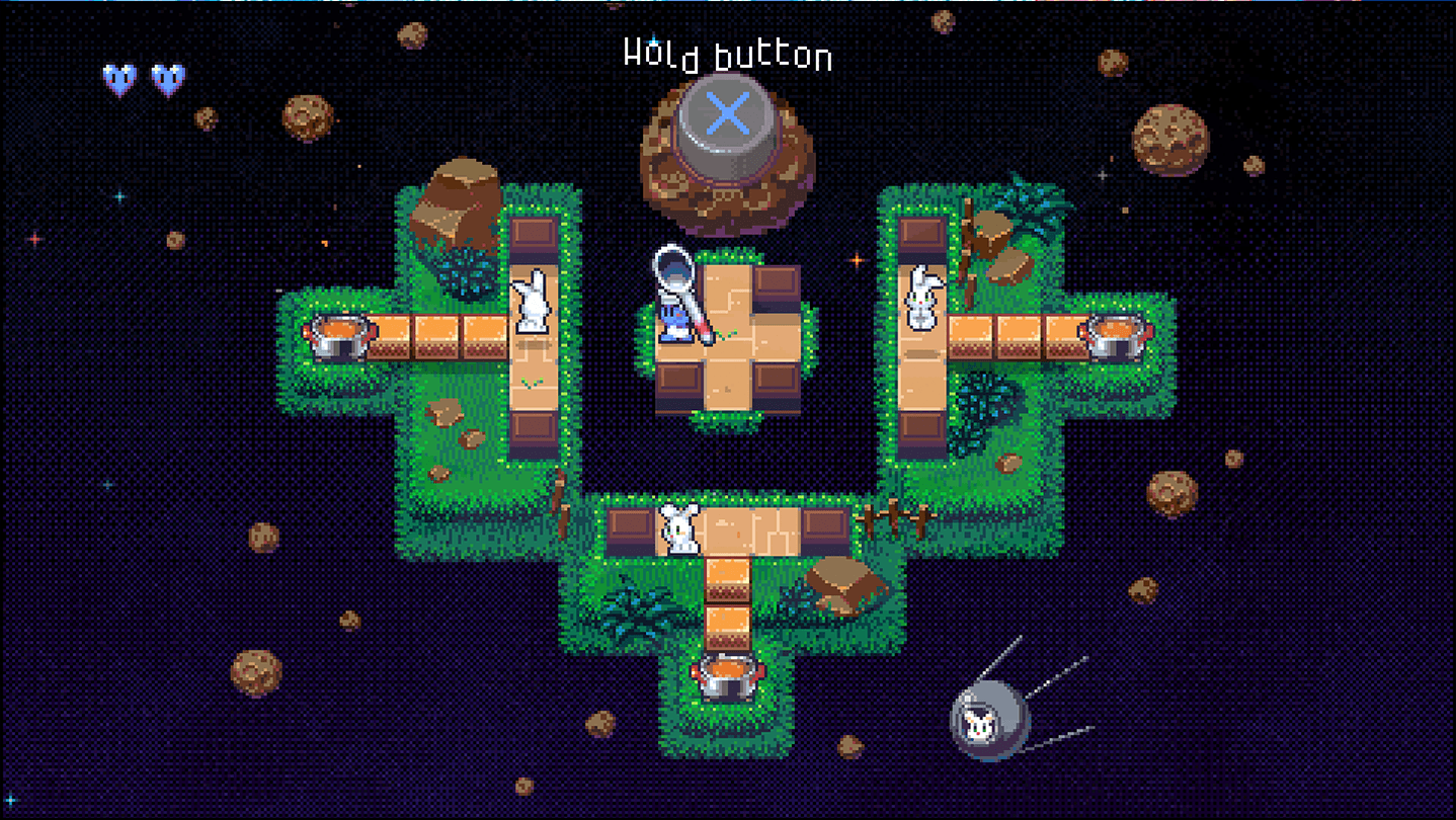 在遥远银河系中,兔子女王因为吃腻了她那索然无味的蔬菜转而绑架了一家传奇太空厨房的厨师们,拯救厨师的任务就担负在你的身上,拿起你的超级勺子向兔子王国出发吧!兔兔这么可爱怎么可以——