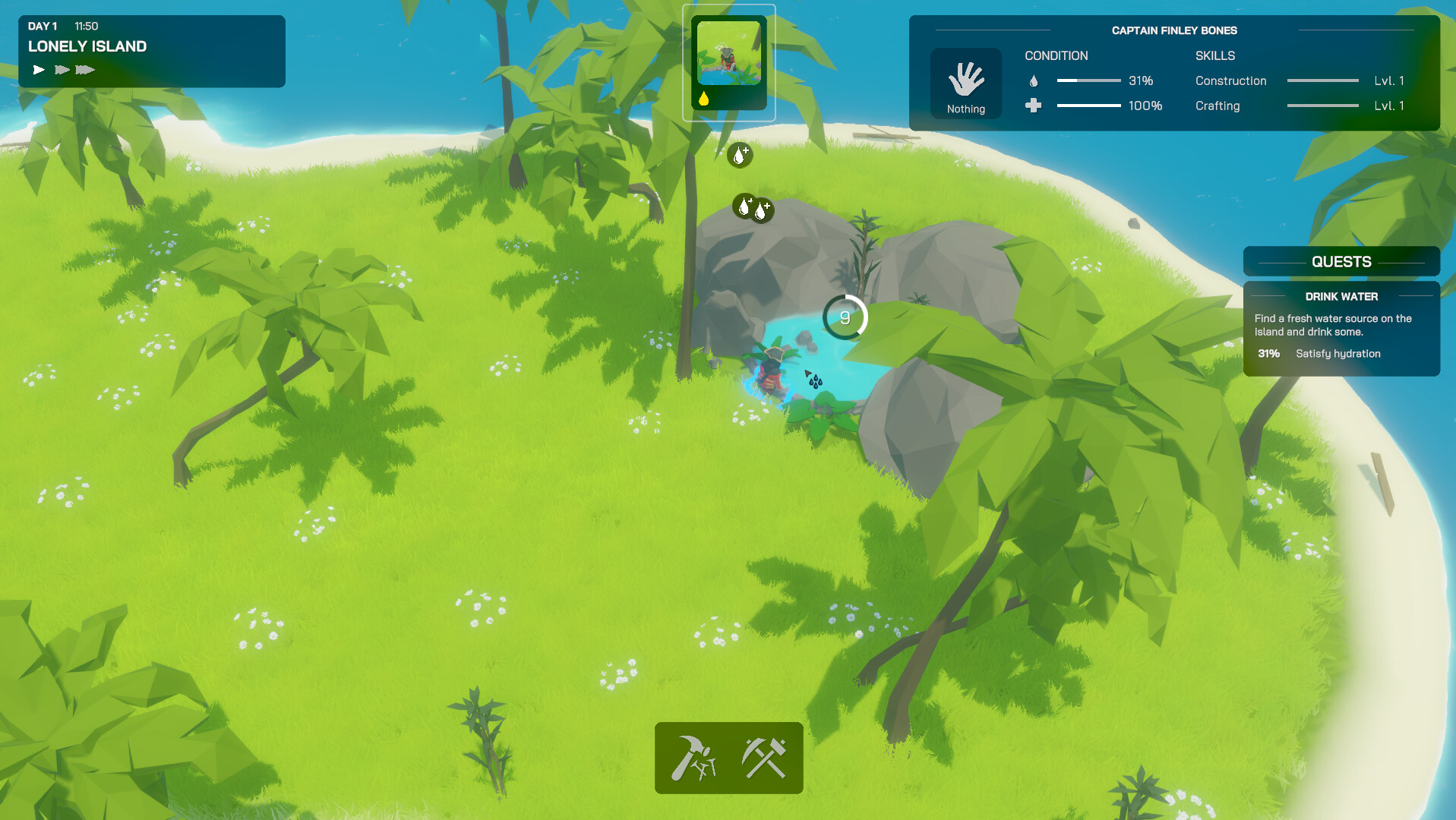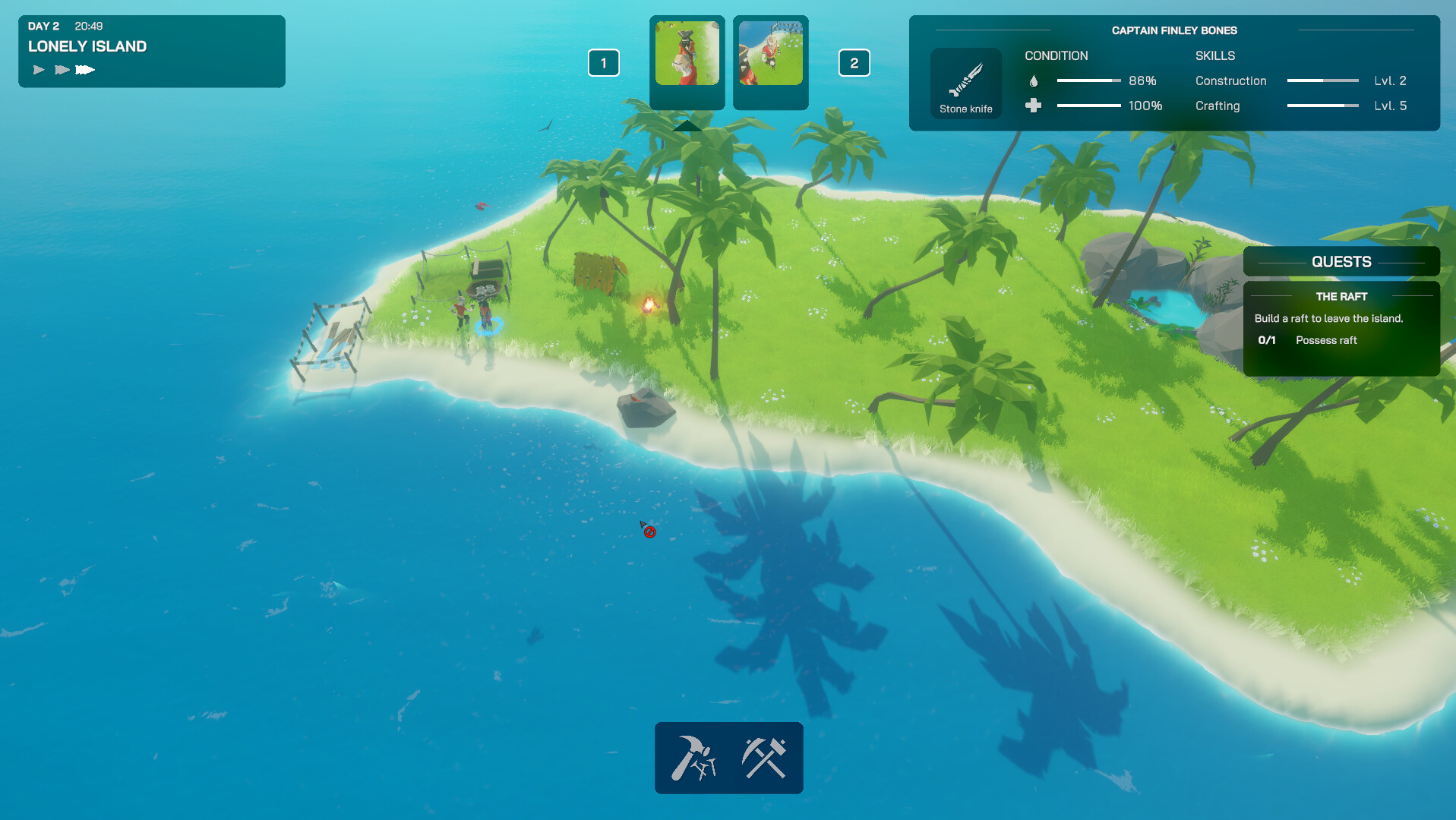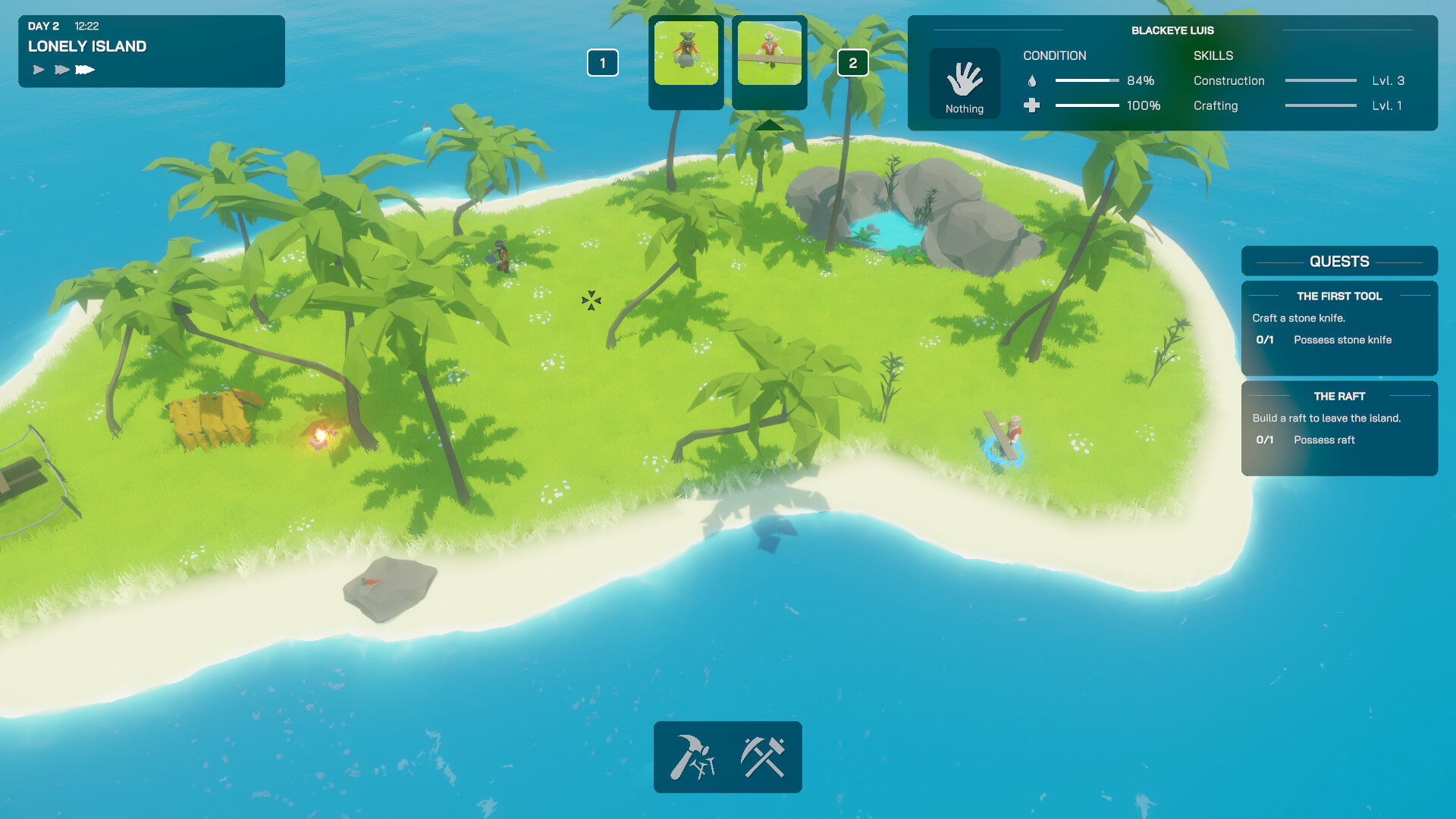 After your ship sank in a disastrous storm, you find yourself stranded on a series of islands. You not only have to find your crew-mates, but explore the environment to find the resources to make it to the next islands until you find a new ship and a way home. Thanks to the procedural map generation every playthrough delivers new challenges and adventures.