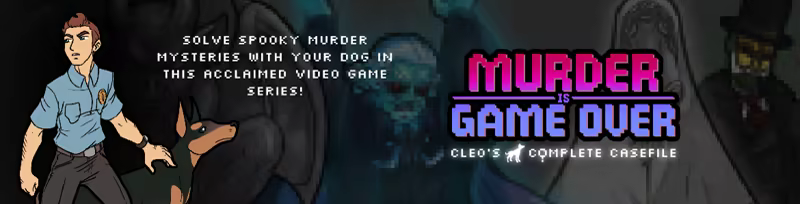 Join the investigation in Murder Is Game Over, a pixel art point-and-click game where you and Cleo try to solve the murder of a famous game designer. Can you uncover the clues and catch the killer before it's game over?