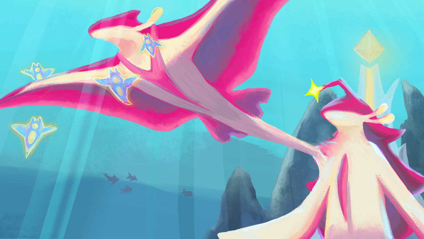 Your character can change its form to be able to move like a stingray. Using the magical power of the Mooties around you, you can flap your fins to impulse yourself forward. You can do this as many times as you have Mooties, but they have to rest, so you will need to transform back whenever their power has worn off.