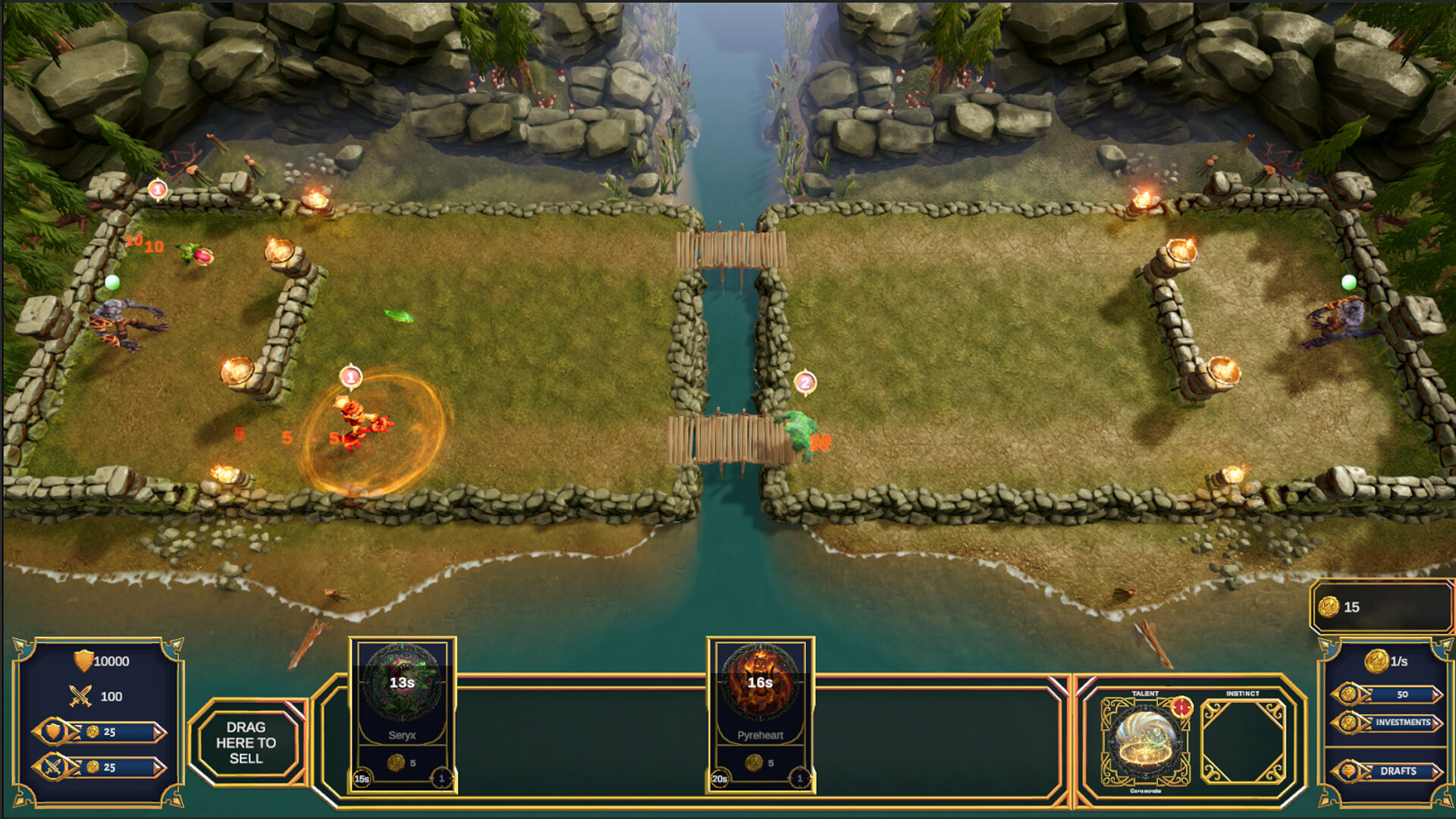 Warlane is a real-time 1v1 strategy game where players draft random units, deploy them to the battlefield, and merge them into powerful fighters to take down the enemy King. Choose Instincts to shape your army's traits, and invest your gold to outplay your opponent.