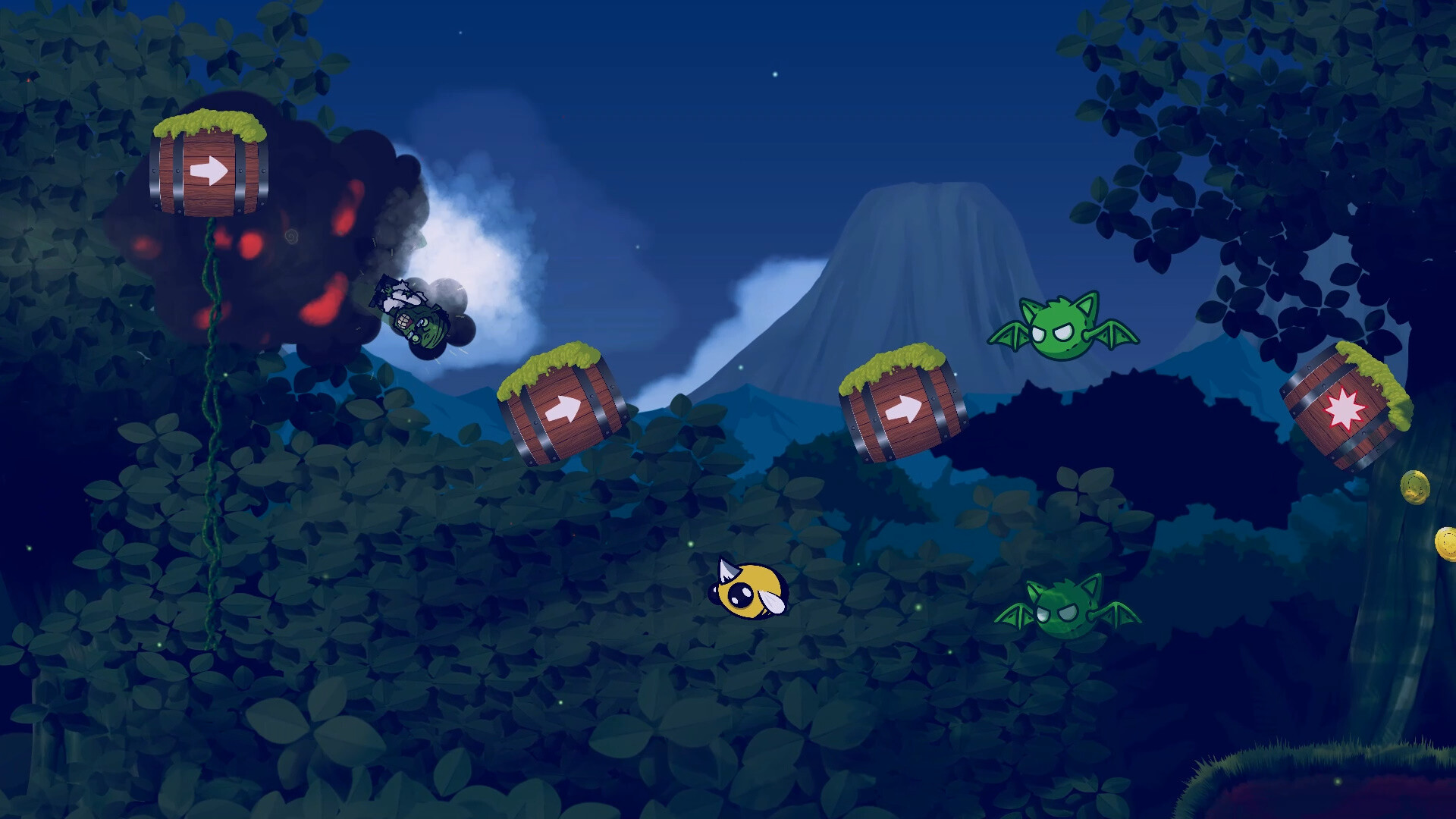 In this high-flying affair, you are not alone- because you'll have to contend with many enemies determined to cut your barrel-blasting sessions short. Some might even chase you, that's how determined they are. So, technically, you are alone, since it's you versus the world. BUT, you'll find plenty of items that will help you in your endeavours (as to whether or not you'll feel less lonely when using them, we can't say). Increase your BiteCoin intake or score-earning potential, slow down moving barrels, and even become invincible to enemies! You might even find something to help you shake off pesky pursuers!