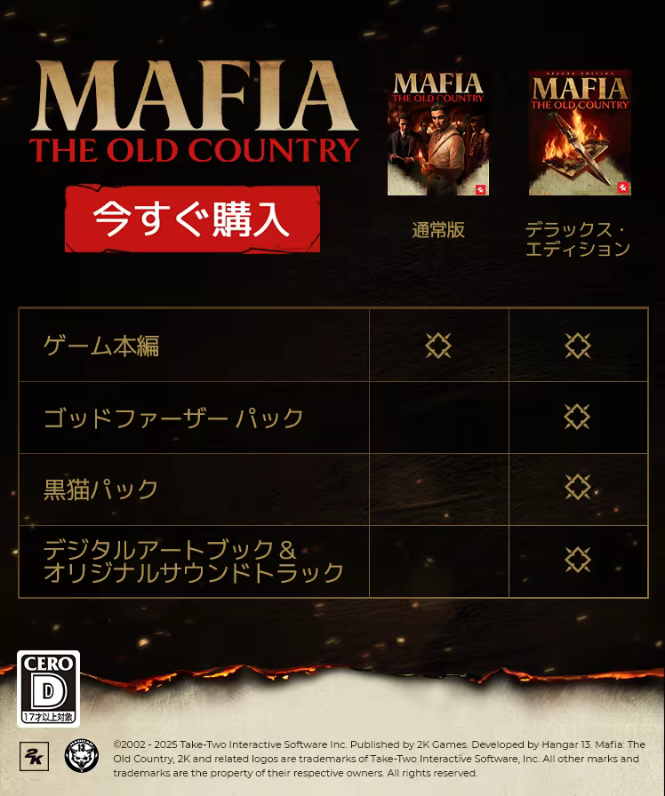『マフィア:オリジン ~裏切りの祖国』デラックス・エディションを購入する