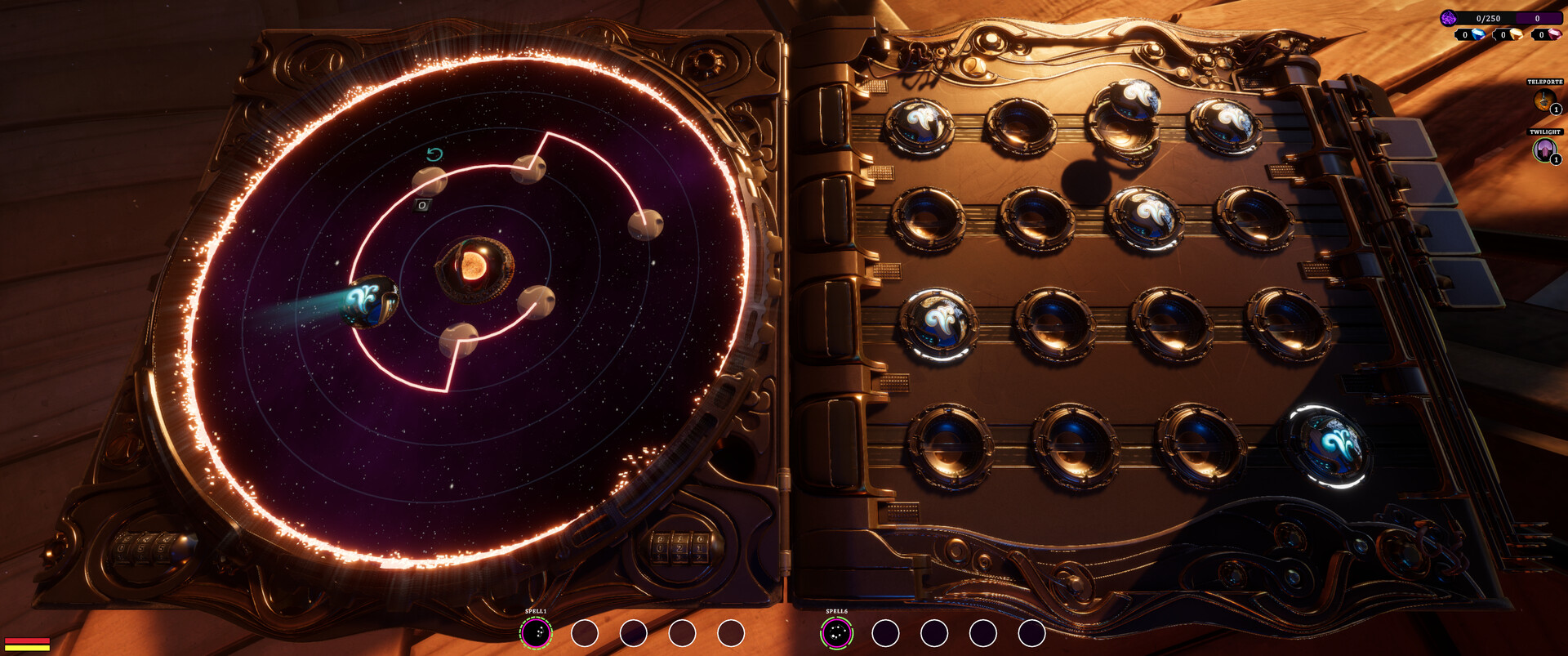 Crafting spells is the core mechanic of the game. You have in your posession a powerful artefact known as an Astral Codex. With the right training it allows you to create almost any spell imaginable.