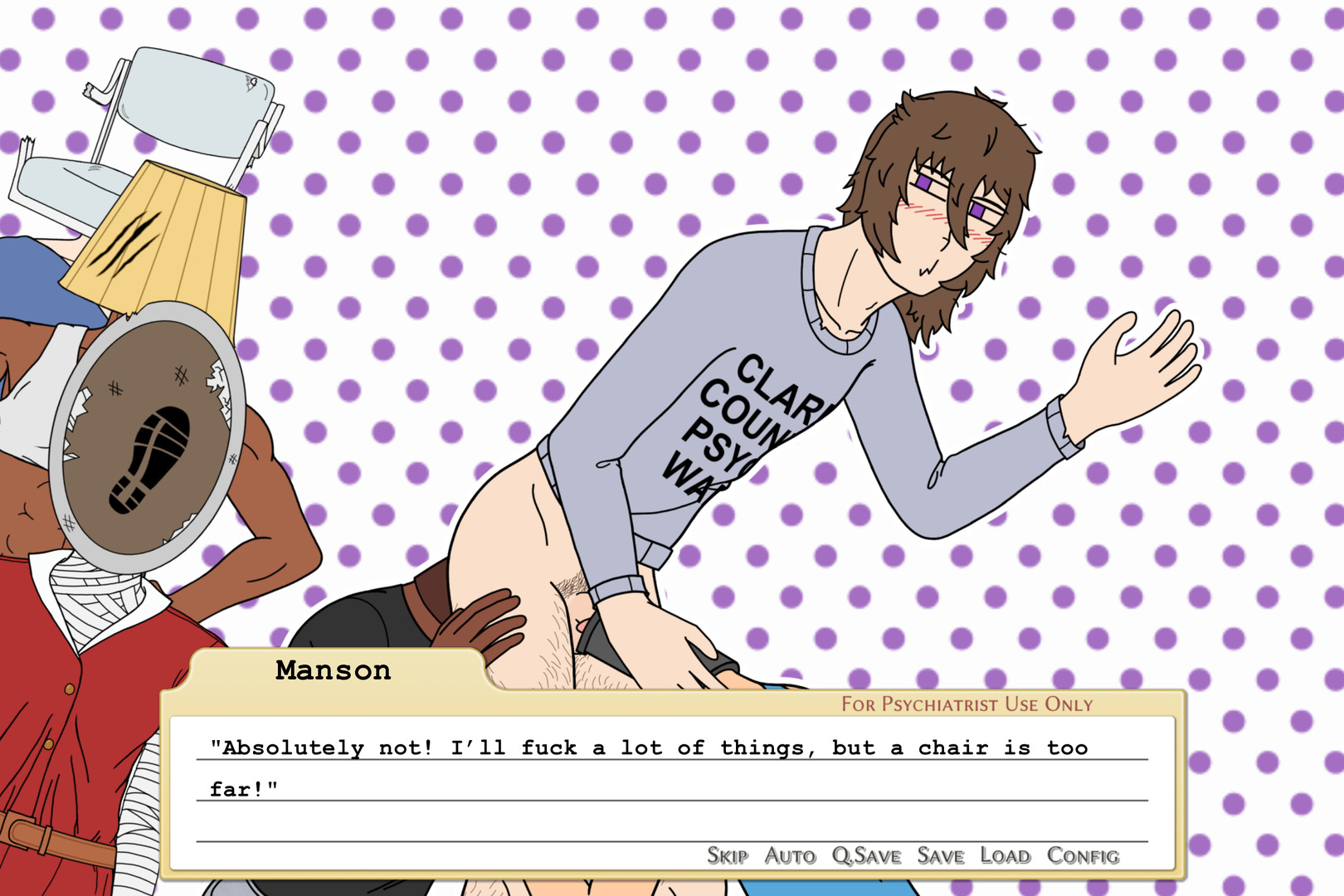 Two silly visual novels involving bisexuals and lesbians, bizarre situations, and even weirder object heads. Therapy not included.