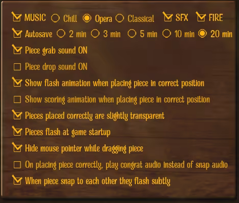• Come back any time to your unfinished jigsaw puzzles (automatic save upon exit).