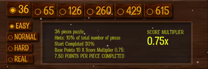 • Challenge yourself with many pieces jigsaw puzzles (up to 615) and difficulty modes (easy, normal, hard, realistic). +Challenging score multiplier feature.