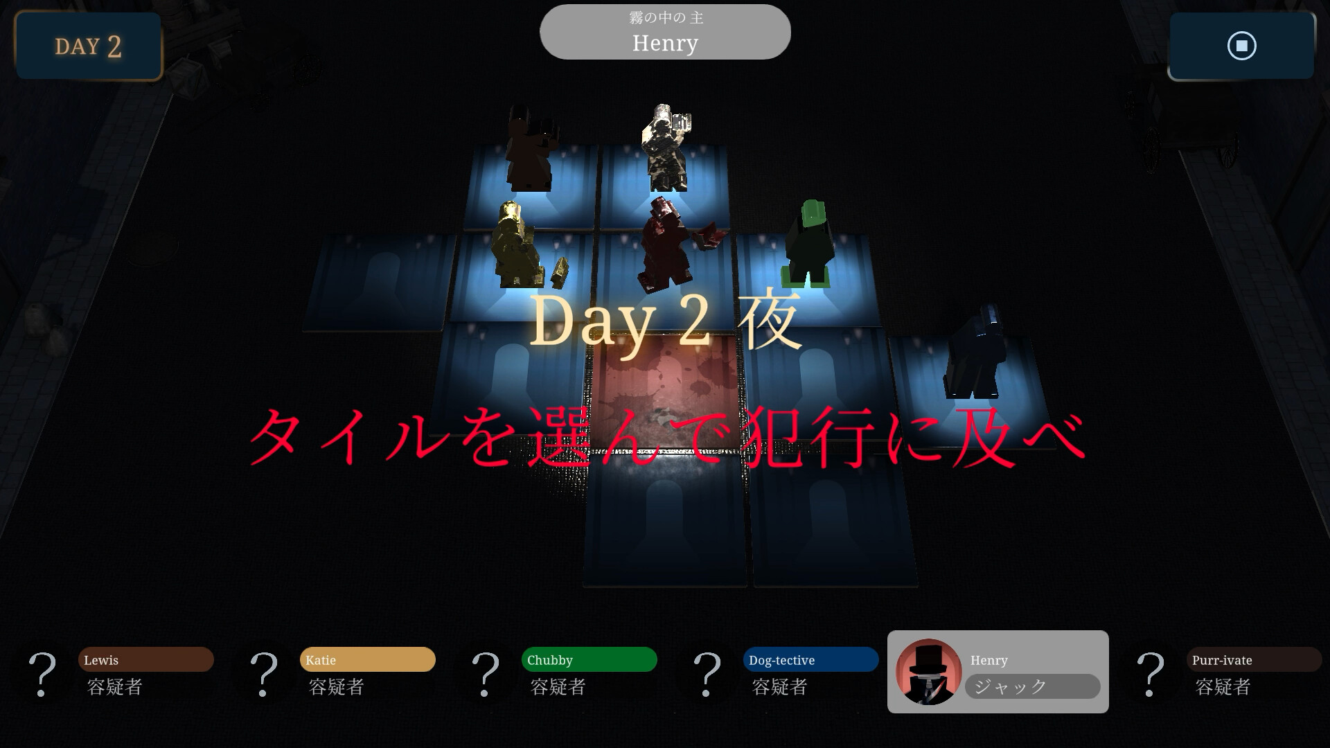 ジャックは探偵プレーヤーにバレないよう殺人を犯します。