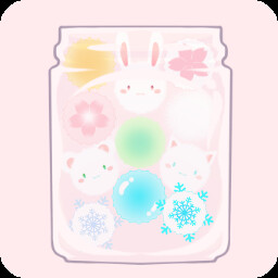 A game where you collect fluff balls that are loose and fill them into jars, all while being accompanied by a feline companion.