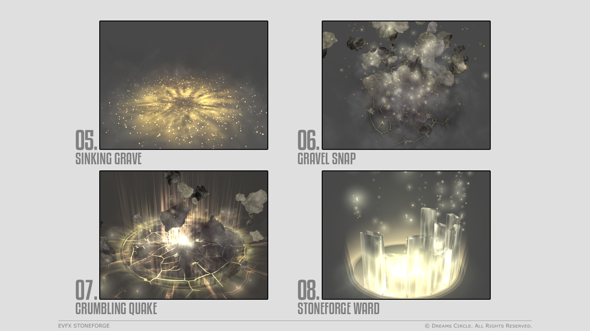 Designed by Dreams Circle, a team specializing in high-quality game assets, "EVFX Stoneforge" features 16 gorgeous visual effects AND complementary sound effects, allowing you to add that professional polish to your projects easier than ever before and awe your audience!