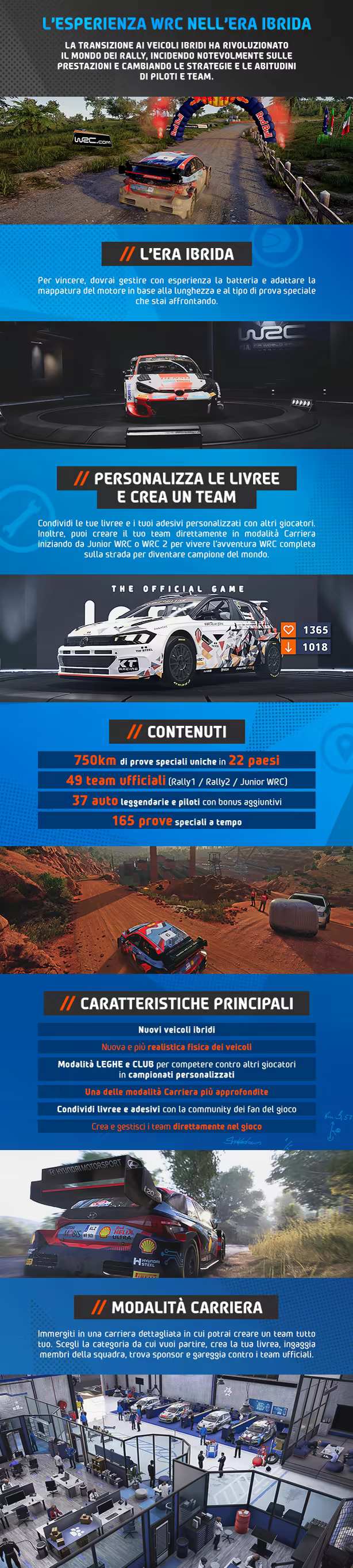 Affronta tutte le sfide del simulatore di rally più completo, realistico e avvincente mai sviluppato. Tuffati nel vivo dell'azione e guida le auto del campionato WRC 2022, tra cui i nuovi modelli ibridi.
