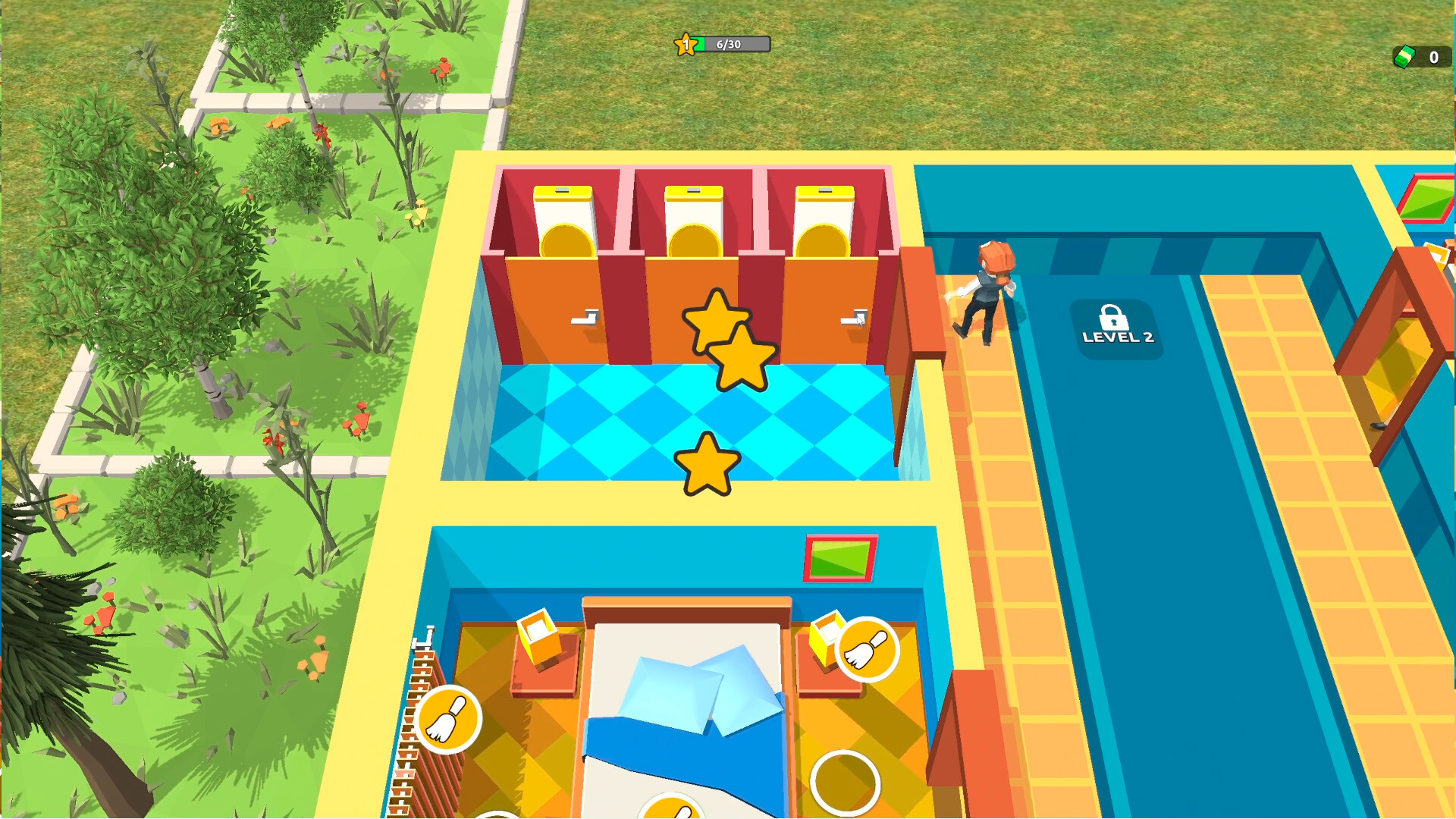 Gradually unlock new areas: restrooms, cafés, swimming pools, and additional buildings.